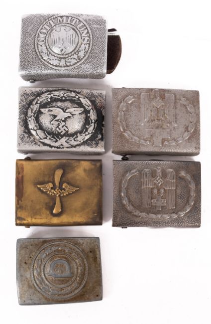 Six German army waist belt clasps. Various designs and sizes including an Aviators example.