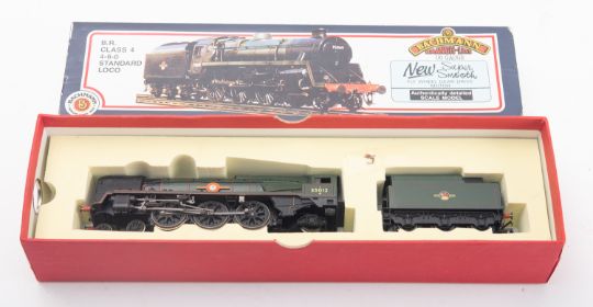 Two OO/HO steam locomotives and tenders. Comprising a Hornby Class 8P Merchant Navy 35012 and a Bachmann BR 4-6-0 Class 4 75023 (boxed).