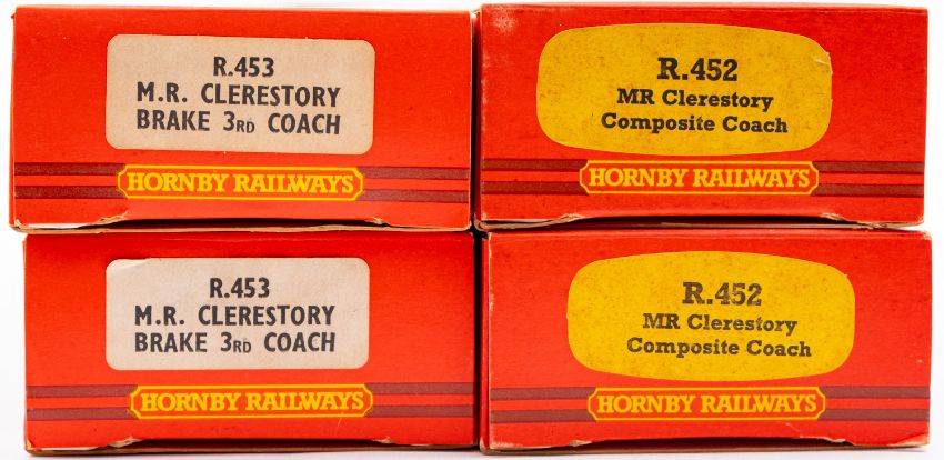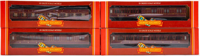 Four Hornby OO/HO Midland Railways passenger coaches. Comprising two composite and two brake/3rd coaches, all boxed.