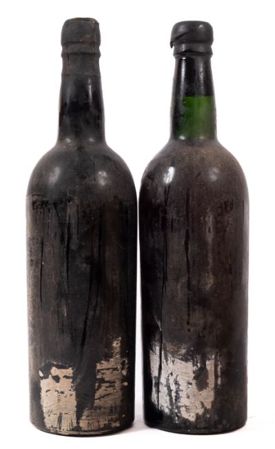 Two bottles of port. Indeterminate vintage, both labels not present, no qty or vols shown.