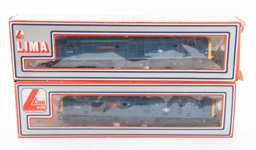 Two Hornby OO/HO Class 37 diesel locomotives. Comprising 'William Cookworthy' 37207 and 'Sir Dyfed County of Dyfed' 37180, both DCC (in Lima boxes).