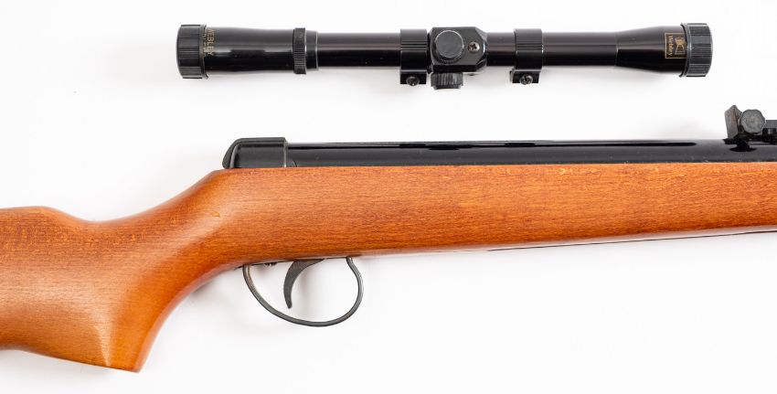 A BSA Meteor break barrel air rifle and scope. Serial number TS75132, having a 18.5" barrel on a wooden stock with 14" length of pull, together with a Webley Redlens 4x20 sight in original box.