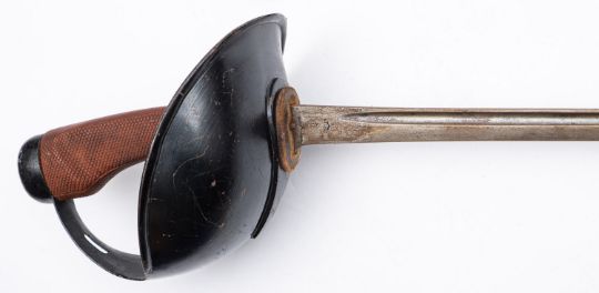 A British 1908 pattern light cavalry sword, Sanderson Brothers & Neubold. Having an 89cm long double edged steel blade on a rounded hilt and moulded grip, with scabbard. Please Note : Under UK legislation this will not be released without a photo ID and age verification check.