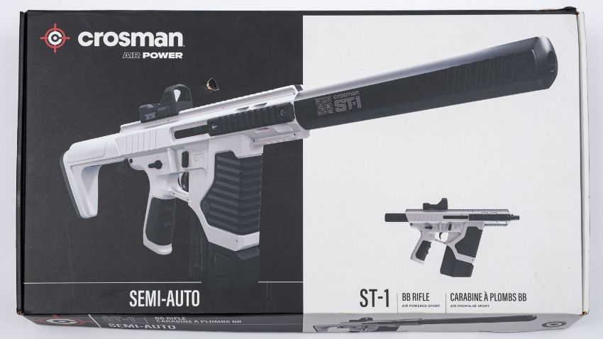 A Crossman ST0-1 .177 calibre CO2 BB gun, serial number 23F042451 in original box. .