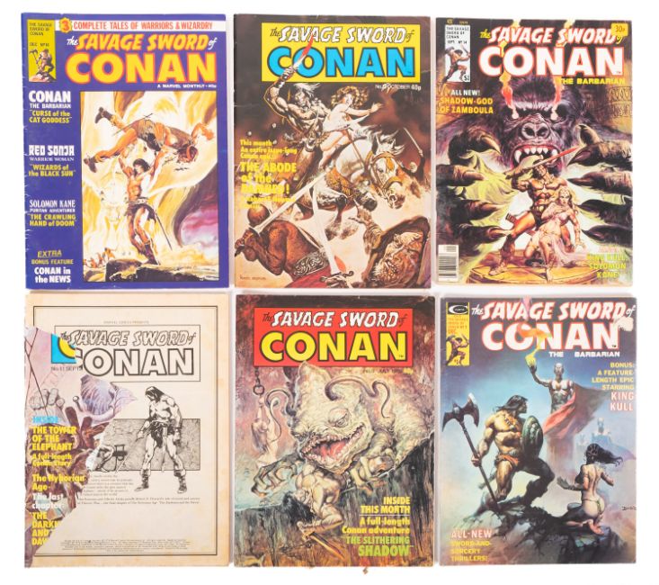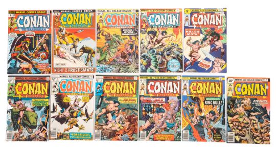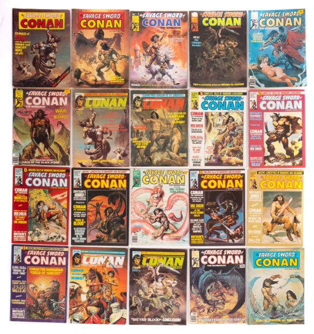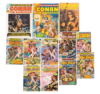 A collection of Marvel 'Conan' comics including 'Red Sonja' (8), 'Conan The Barbarian' (30), 'The Savage Sword of Conan' (26), and four others