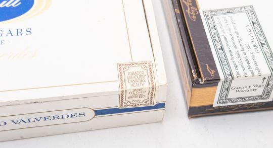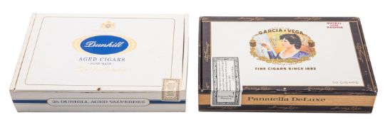 An unopened box of Dunhill Valverdes Aged cigars (25) together with a part box of La Flor de Garcia Y Vega Panatella DeLuxe.