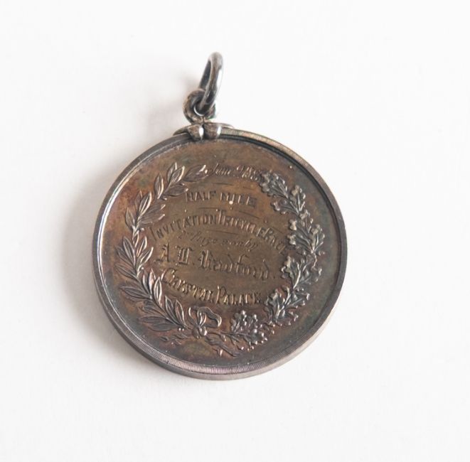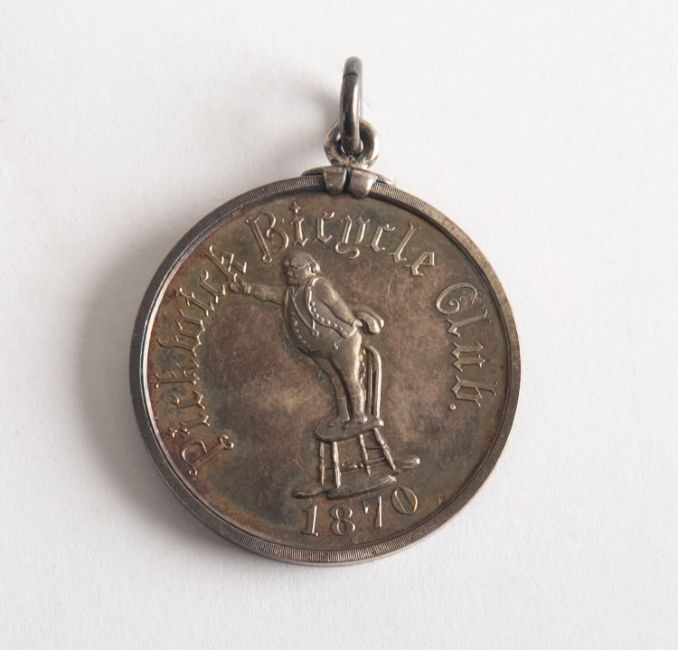 An 1870 silver plated Pickwick Bicycle Club medal awarded to Mr A L Radford. The medal awarded to the runner up of the half mile invitational tricycle race.