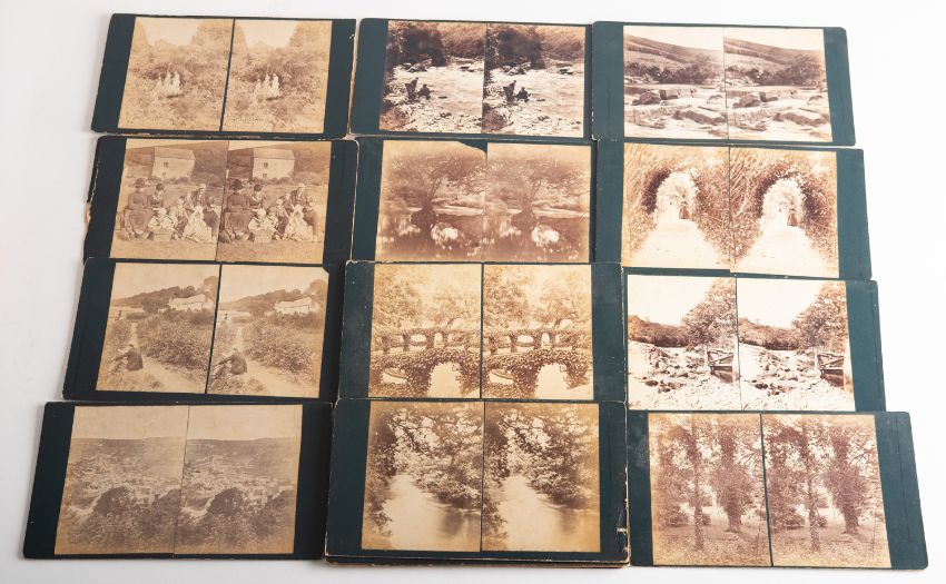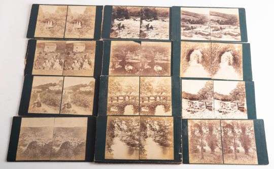 A group of twenty large format early 19th century stereoscope cards:, unknown photographer, showing views of formal gardens and rural scenes, possibly Scottish, image size 11.5 x 8cm.