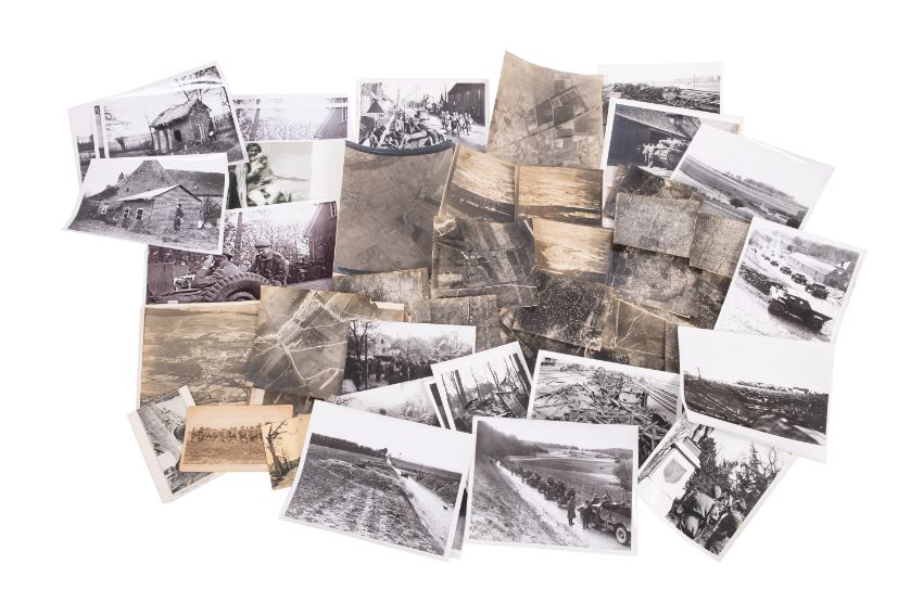 A collection of thirty eight WWI aerial photographs, circa 1916 together with five WWII aerial photographs, three WWI postcards and a collection of later WWII reprint photographs of Montgomery and various related subject matter.
