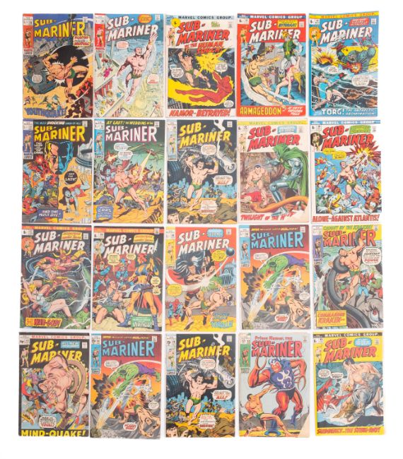 A collection of Marvel comics including American issues 'Sub-Mariner' (29), 'The Invincible Iron Man' (13) including 'The Invincible Iron Man King-Size Special No. 1', 'Daredevil The Man Without Fear' (25), and 'Daredevil And The Black Widow' (3), 'The Man Called Nova' (5), and 'The Defenders' (5)
