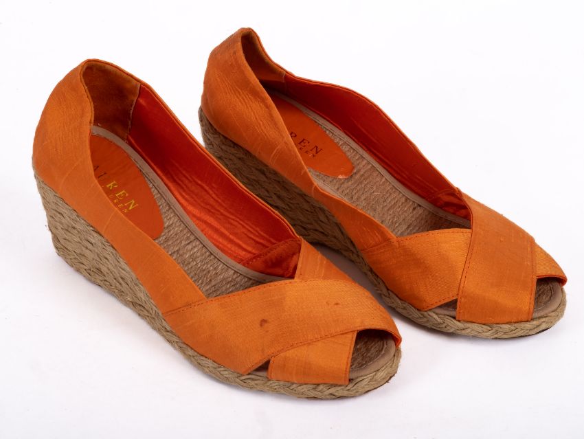 Ralph Lauren. A pair of orange satin Lauren, Ralph Lauren, wedges.