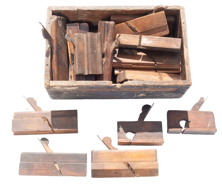 A collection of moulding planes. Various sizes and makers including L Rodgers etc.