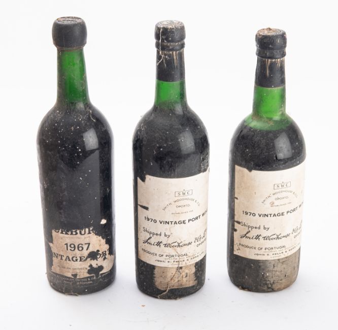 Two bottles of Smith, Woodhouse & Co. 1970 vintage port. Together with a bottle of Cockburns 1967 vintage port, no qty or vol shown,