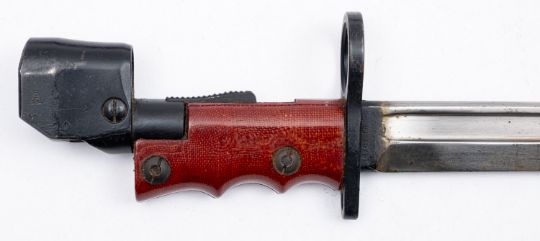 A 1948 No.7 bayonet for a sten MkV smg. Having an 8' single edged steel blade on a moulded grip with metal scabbard, date stamp to the blade. Please Note : Under UK legislation this will not be released without a photo ID and age verification check.