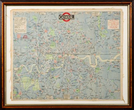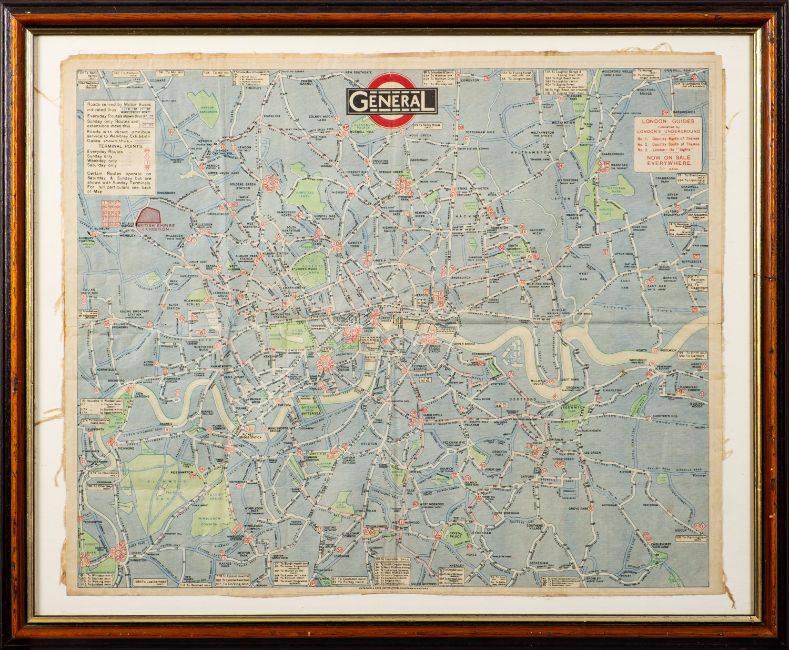 LONDON GENERAL OMNIBUS COMPANY (pub.). London transport map, circa 1925, laid on cloth, with folds, f&g, 37cm x 45cm.
