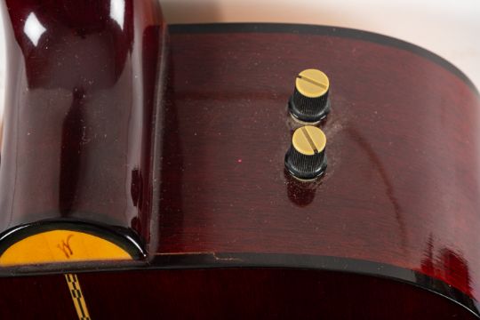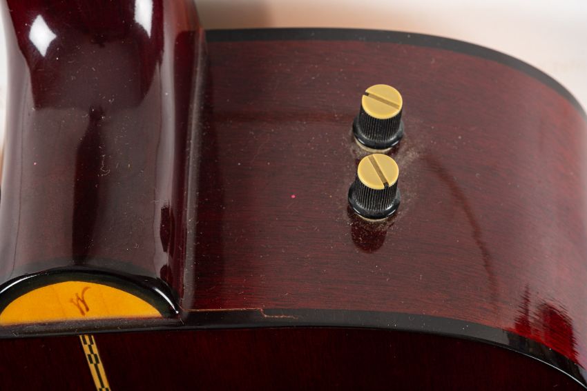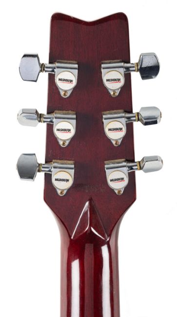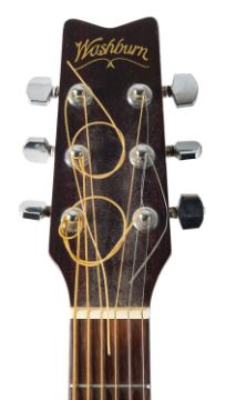 A Washburn electro acoustic D-12CE/N guitar, serial number 8904087, mother of pearl inlaid fret markers, single cut away body with black scratch plate, in a soft shell case.