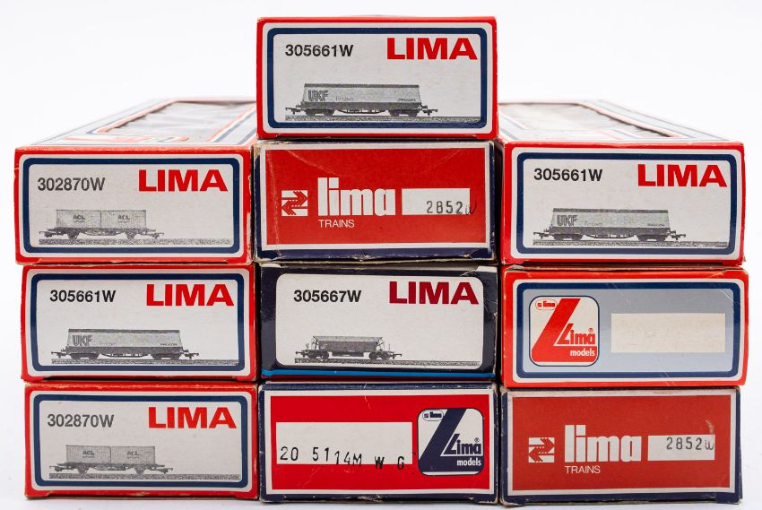 Ten Lima OO/HO goods wagons. Including bulkers, flatbeds and tankers etc, all boxed.