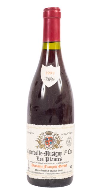 A bottle of Chambolle Musigny prem. Cru Les Plantes 1997. 75cl, 13% vol.