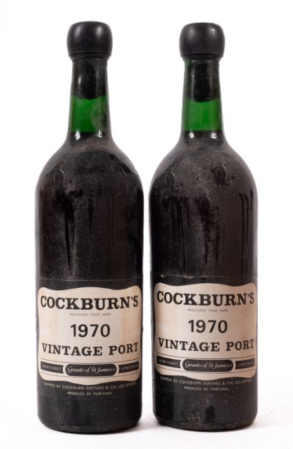 Two bottles of Cockburns 1970 vintage port. No qty or vols shown.