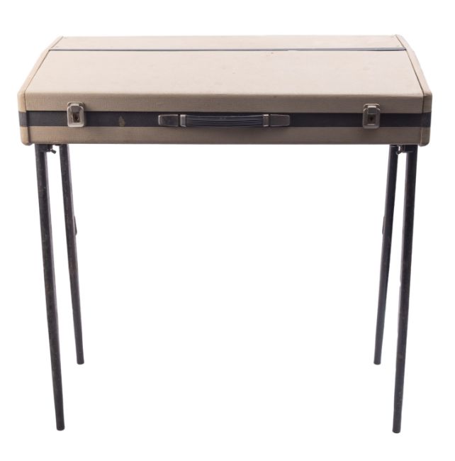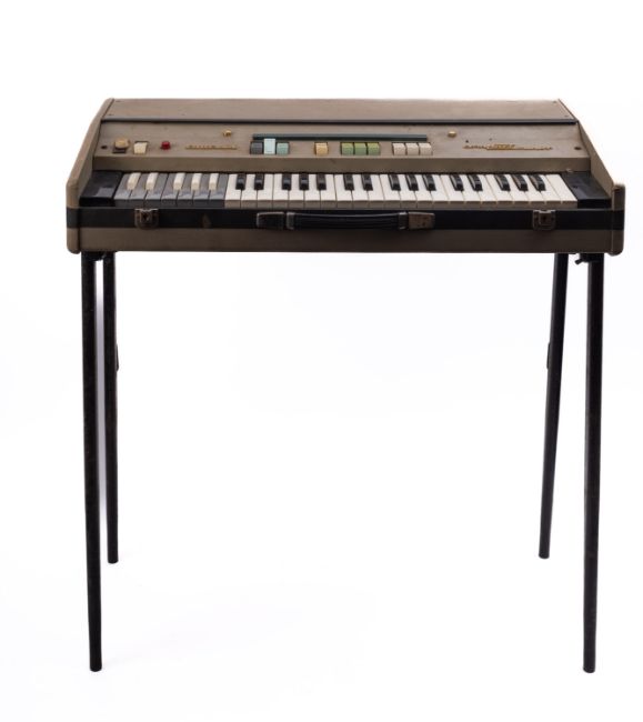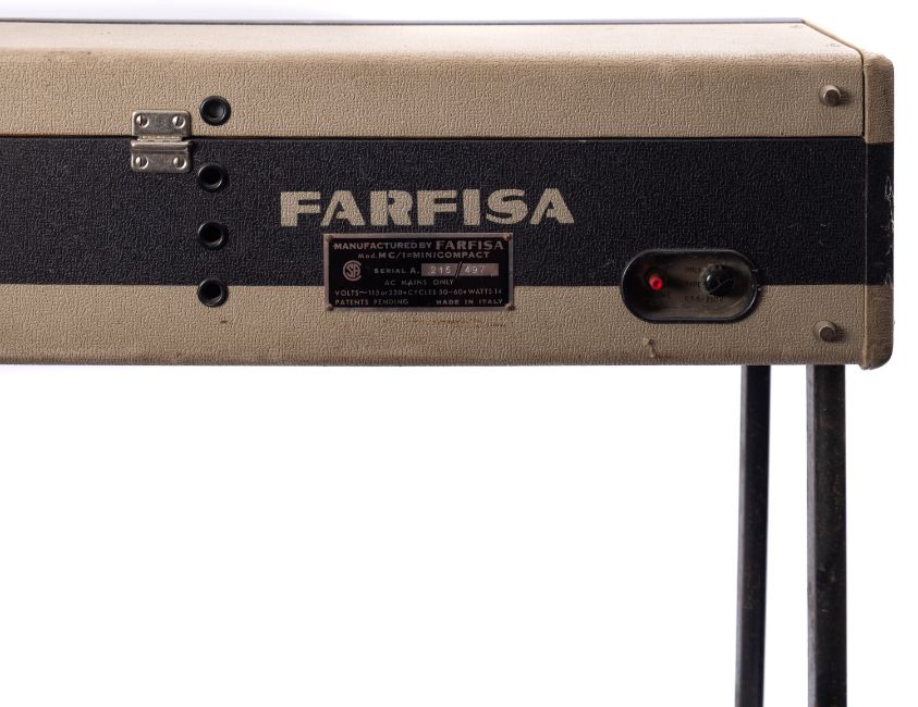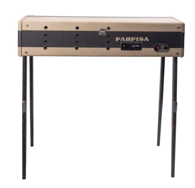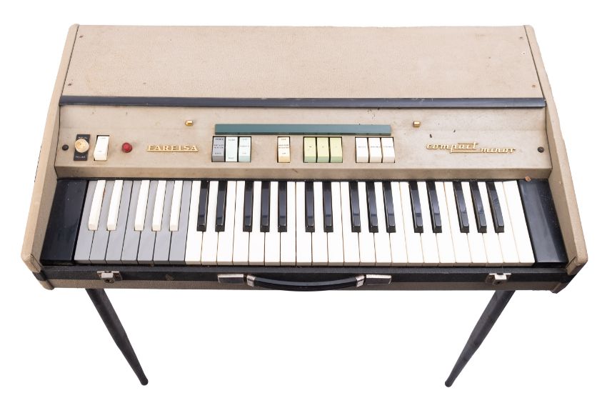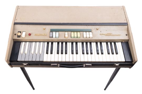 A Farfisa 'Compact Minor' electric organ , circa 1960s, with white and grey two-tone keyboards, grey case with black steel legs, 82x46cm (untested)