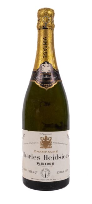 A bottle of Charles Heidsick 1964 Finest Extra Dry Champagne. No qty or vol shown.