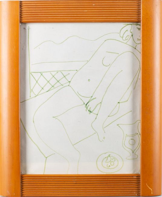*Edward Wolfe RA (South African/ British, 1897-1982) - Head of a girl and a seated nude - Two studies in green ink - Each approximately 24 x 19cm (2) - Provenance: By descent from James (Jim) O'Connor, Edward Wolfe's partner