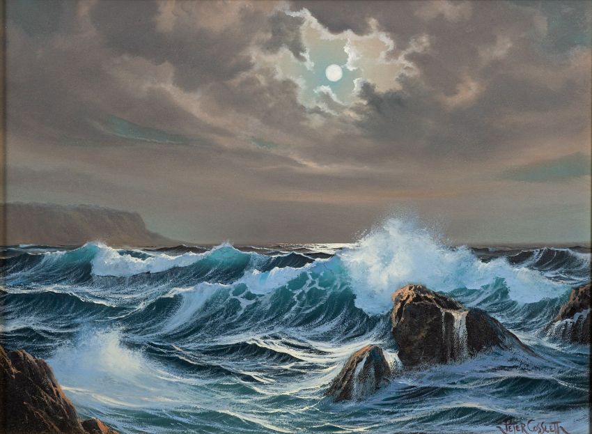 *Peter Cosslett (British, 1927-2012) - Breaking waves -Oil on board -28 x 39cm, 38 x 48cm framed -Signed lower right.