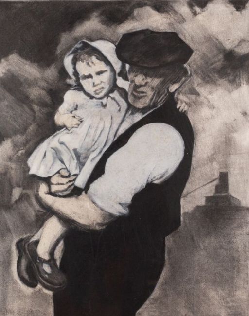 Anna Lockwood (British, 20th Century) - 'Miner and granddaughter' (Sketch No. 1) - Charcoal drawing - 58 x 45.5cm including the margin - 88.5 x 64cm framed - Signed, inscribed and dated 1993 lower margin