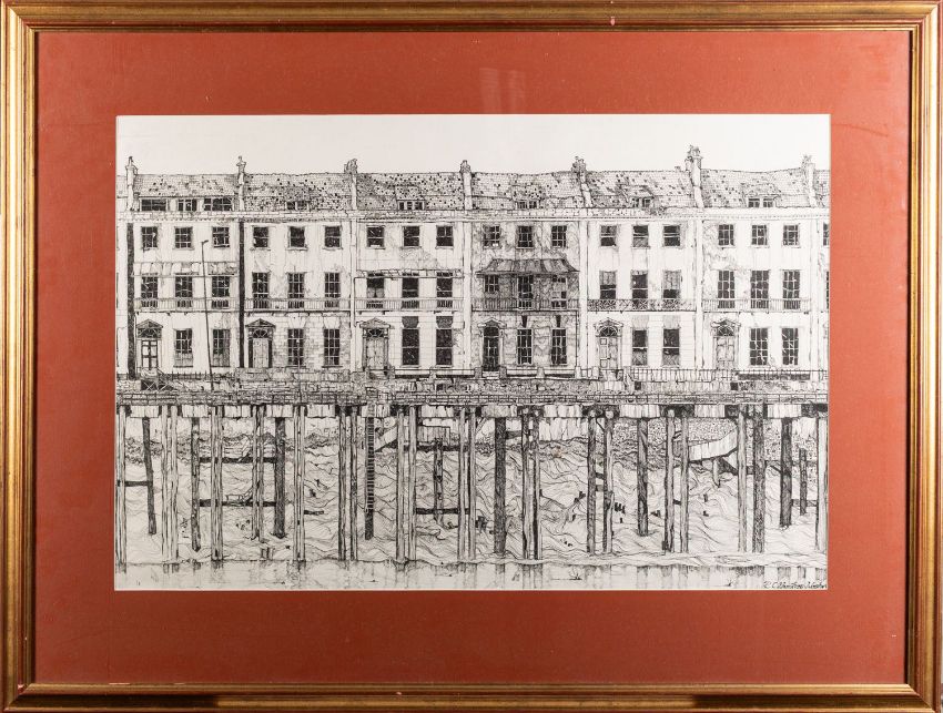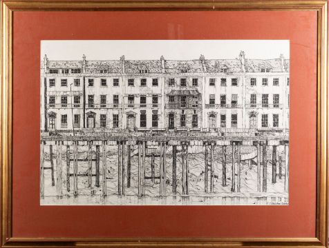 R C Hughes-Weston (British, Contemporary) -Portnay Houses -Pen and ink on paper -49.5 x 74cm - 75 x 98cm framed -Signed lower right