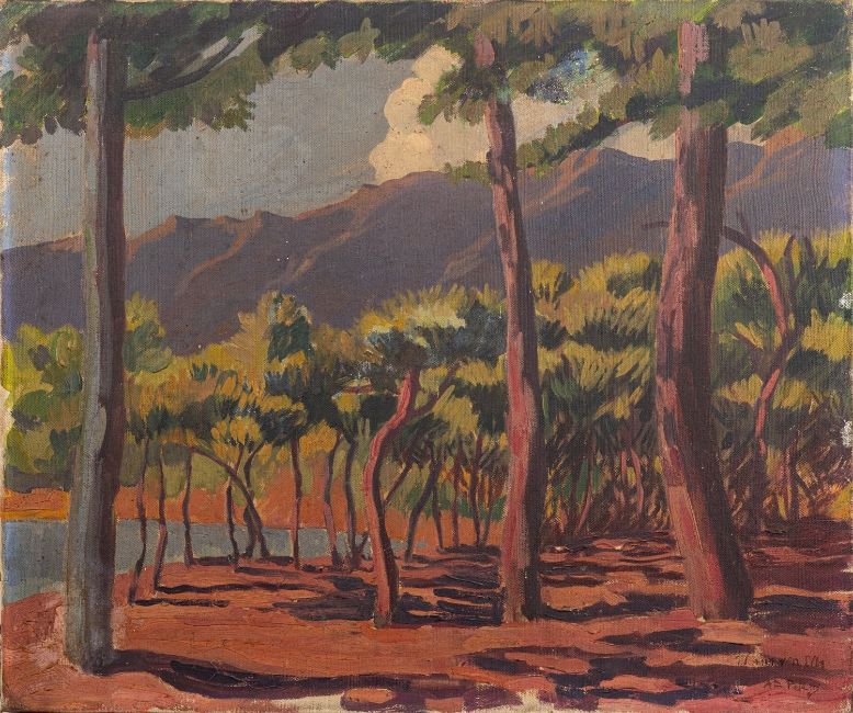 British School, 20th Century -Topographical coastal view, possibly Elba -Oil on canvas -46 x 55cm unframed -Indistinctly inscribed lower right ' ... Elba'' and signed ' A R P..y'.