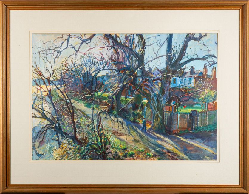 Gary Jeffrey (British b.1966) - 'Hammersmith Embankment' - Acrylic on paper - 55 x 81cm - framed - Provenence: Llewellyn Alexander Ltd, London SE1.