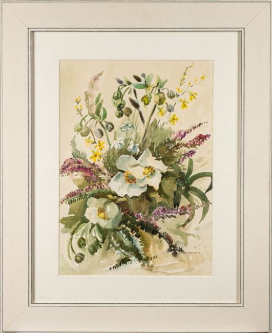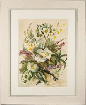 Joan Phillips (British, Contemporary)Still life of roses -Watercolour -49 x 39cm, 74.5 x 64.5cm -Together with another still life watercolour of flowers, 45 x 32cm, 69.5 x 54.5cm framed, by the same hand. (2)