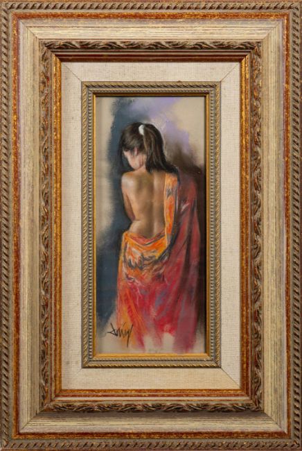 Domingo Alvarez Gomez (Spanish, b. 1942) -Study of a woman's back -Pastel -29 x 12cm - 50 x 34cm framed -Signed lower left