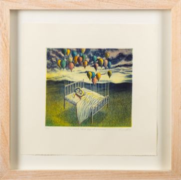 Trevor Price (British, b.1966) - 'The moment between sleep and consciousness' - Coloured etching - 35 x 35.5cm, 47 x 47.5cm framed - Signed lower right, inscribed with the title lower centre and numbered 113/150 lower left.