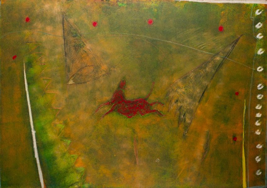 Gerard Bouvier (French, b.1942) -Cave Painting -Oil on canvas -114 x 162cm unframed -Signed on the reverse and dated 1992.