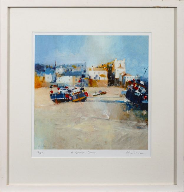 After Glyn Macey (British) 'Cornish Dawn' - Limited edition print - 27 x 27cm, framed -Signed lower left and numbered 210/295 - Together with another Cornish print. (2).* Provenance a gift from the artist to Caroline Quentin