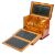 A fine Edwardian rosewood, satinwood and marquetry table top stationery and correspondence cabinet, early 20th century; the hinged cover and hinged front with inlaid fan paterae and quarter patera spandrels; the fully fitted interior with racks, drawers, compartments for pens and ink, and a hinged writing surface with gilt tooled leather skiver; 30cm high, 42cm wide, 24cm deep