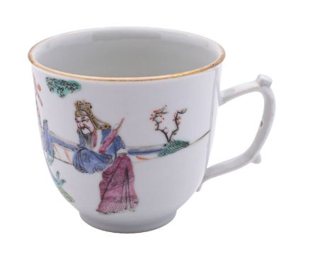 A mixed lot of Chinese ceramics, Qing dynasty comprising a famille rose cup and saucer painted with the three Star Gods and other figures, apocryphal iron-red Daoguang seal marks; a blue and white 'dragon' sleeve vase, apocryphal Kangxi mark, 20cm [rim chips]; two blue and white dishes, 24 and 28cm; a famille rose export globular teapot and cover, 15cm [damage to spout]; together with a Japanese Satsuma vase, 19cm wood stand; and an English transfer-printed tea cup and saucer [9].