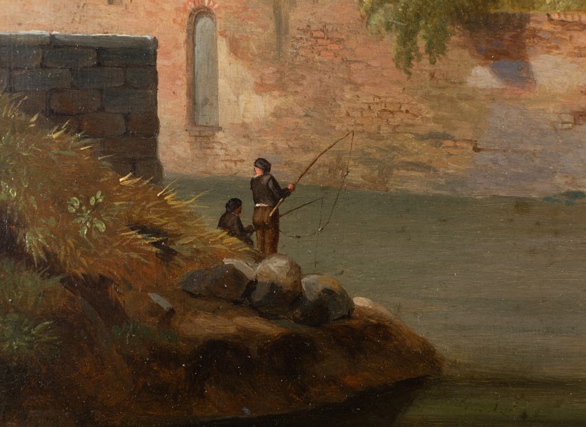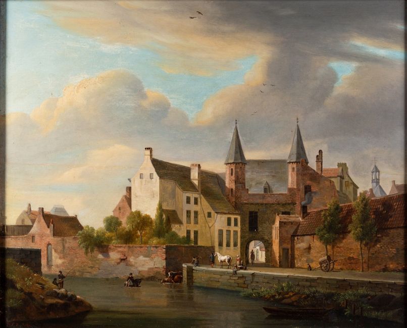 Pierre François De Noter (Flemish, 1779-1843) - View of the Heuvel Gate at Ghent - Oil on panel - 32 x 40.5cm, 50.5 x 59cm framed - Signed lower left.
