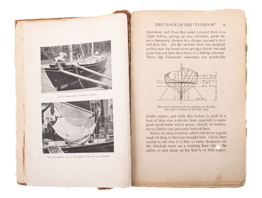 NUTTING, William Washburn. The Track of the "Typhoon", association copy, 1st edition, New York: The Motor Boat Publishing Company, 1922, signed and inscribed by the author 'To Uf Fox the first mate of the Typhoon (and a damn good one too) with the gratitude of the Skipper Wm. W. Nutting Dec 1921', some leaves and gatherings loose, browning and edgewear, orig. brown cloth distressed, detaching from text-block, 8vo.Provenance: By descent from Uffa Fox.[William Washburn Nutting co-founded the Cruising Club of America. He was lost at sea in the Atlantic in 1924.]