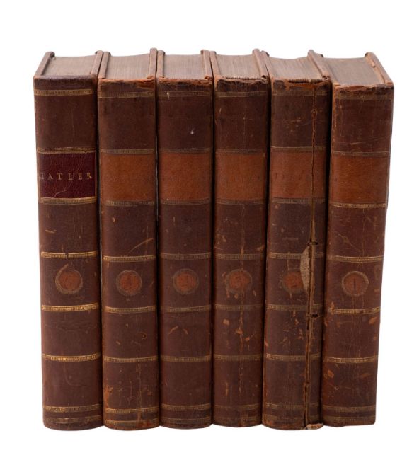THE TATLER. The Lucubrations of Isaac Bickerstaff, Esq. A new edition, with notes, in six volumes, London: Printed for C. Bathurst et al., 1786, engr. frontispieces and plates, bookplates, contemp. calf, cracking to joints and some spines, 8vo. (6)