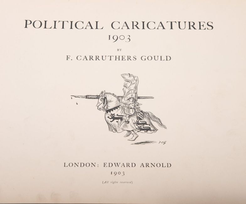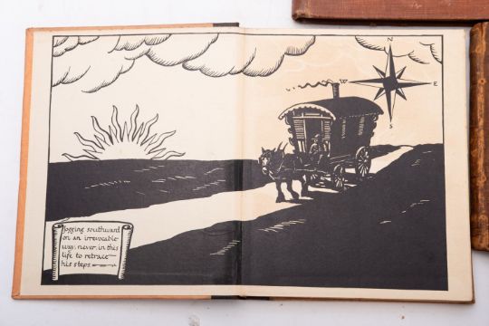 LITERATURE AND ILLUSTRATED. A miscellaneous group including: LOCKE, William J.; FOSTER, Marcia Lane (illust.). The Golden Journey of Mr. Paradyne, 1st edition, London: John Lane The Bodley Head, 1924, colour woodcut frontis. & 7 plates, illustrations, pictorial endpapers, orig pictorial cloth-backed boards, sq. 8vo; GOULD, F. Carruthers. Political Caricatures 1903, London: Edward Arnold 1903, num. illustrations, orig. pictorial cloth, scuffed, oblong folio; GOLDSMITH, Oliver. The Vicar of Wakefield, a tale, ...to which are added, The Village Curate, and the Swiss Peasant, from his poetical works...The Poor White Man, by the Dutchess of Devonshire, ... London: for C. Hulbert, 1818, engr. frontis, quarter-calf scuffed (repairs to joints), 12mo; and two others French. (5)