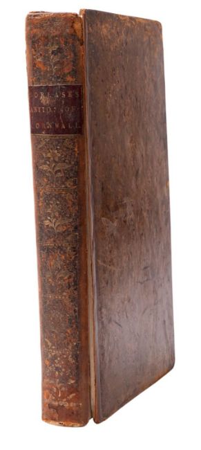 BORLASE, William. Antiquities, Historical and Monumental, of the County of Cornwall..., 2nd edition, London: For S. Baker and G. Leigh, T. Payne and Benjamin White, 1769, 2 engr. maps (1 folding), 25 engr. plates (1 folding), engr. illustrations, some spotting to endpapers and folding map, some offsetting, generally clean, bookplates, contemp. tree calf scuffed, cracking to joints (through old repair), front board detached, folio.