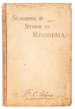 AFRICA. A collection of works and items, including: BUCKLEY, W. Big Game Hunting in Central Africa, 1st edition, London: Cecil Palmer, 1930, signed and inscribed to flyleaf, portrait frontis. (detached), spotting, orig. brown cloth scuffed, 8vo; SELOUS, Frederick Courteney. Sunshine and Storm in Rhodesia, 1st edition, London: Rowland Ward, 1896, orig. cloth soiled/scuffed, 8vo; BLIXEN, Karen. Out of Africa, 2nd impression, London: Putnam, 1938, contemp. ink gift inscription to flyleaf, bookplate and later ownership inscription to fep and ffep, orig red cloth rubbed, 8vo; MAXWELL, Marius. Stalking Big Game with a Camera in Equatorial Africa, London: William Heinemann Ltd., 1925, num. plates, some folding, splitting to front hinge, orig. navy cloth soiled/rubbed, some spotting, large 4to; together with approx 50 other misc. vols., many Africa or hunting related, mixed condition; with a group of related items including a pair of field binoculars in a canvas case, a hunting knife, and shotgun cleaning brushes. (2 large boxes)
