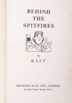 ROYAL AIR FORCE, WWII. [HOOPER, William John] 'RAFF'. Behind the Spitfires, 1st edition, London: Methuen & Co. Ltd., 1941, red cloth, dj, 8vo; 'RAFF' and ARMSTRONG, Anthony. Nice Types, 1st edition, ibid, 1943, orange cloth, dj, 8vo; IDEM. Goodbye, Nice Types, 1st edition, ibid, 1946, blue cloth, dj; with 6 other works by Armstrong, mixed editions, most with dj; spotting, ink ownership inscriptions, dj's spotted/chipped; together with.... RAYMOND, R. (ed.). Slipstream, A Royal Air Force Anthology, 1st edition, London: Eyre and Spottiswoode, 1946, blue cloth, dj (chipped, tape repairs), 8vo; SMITH, Sydney. Wings Day, 1st edition, London: Collins, 1968, blue cloth, dj, 8vo; with two copies of The Battle of Britain (HMSO, 1941, blue wraps), and a signed copy of Through Soviet Russia (Hooper, A.S., 8th ed., 1944, blue wrap). (14)