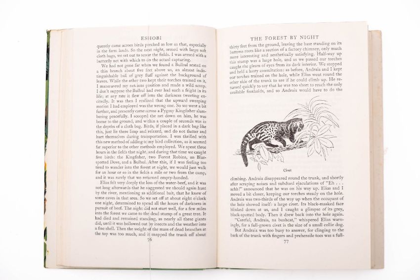 DURRELL, Gerald. Six 1st editions: The Overloaded Ark, London: Faber and Faber, 1953, ink ownership inscription to fep, toning to endpapers, dj unclipped (edgewear, small edge-tears), orig. green cloth (rubbed, frayed spots, upper board bowed), t.e.blue, 8vo; My Family and Other Animals, London: Rupert Hart-Davis, 1956, toning to endpapers, dj clipped (chips, tears, ink initials to front flap), orig. green cloth, t.e.green, 8vo; Encounter with Animals, ibid, 1958, toning to endpapers, dj unclipped, orig. blue cloth, 8vo; A Zoo in my Luggage, ibid, 1960, dj unclipped (edgewear, small edge-tears), toning to endpapers, orig. blue cloth, 8vo; The Whispering Land, ibid, 1961, dj unclipped, orig. orange cloth, 8vo; Birds, Beasts and Relatives, London: Collins, 1969, light spotting to endpapers, dj unclipped (some spotting), orig. red/orange cloth, 8vo. (6)