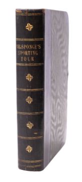 [SURTEES, Robert Smith]. Mr Sponge's Sporting Tour, 1st edition in book form, bound from the parts, London: Bradbury and Evans, 1853, dedication first state to 'Lord Elcho', title with engr. vignette, 13 hand coloured engr. plates by John Leech, num. illustrations, foxing, some edgewear & edgetears, gatherings becoming loose, several leaves & plates reattached with tape, ffep glued to fep and creased, contemp. black half-morocco rubbed/bumped, 8vo.