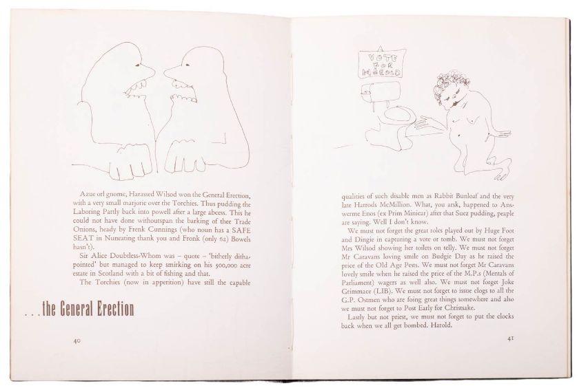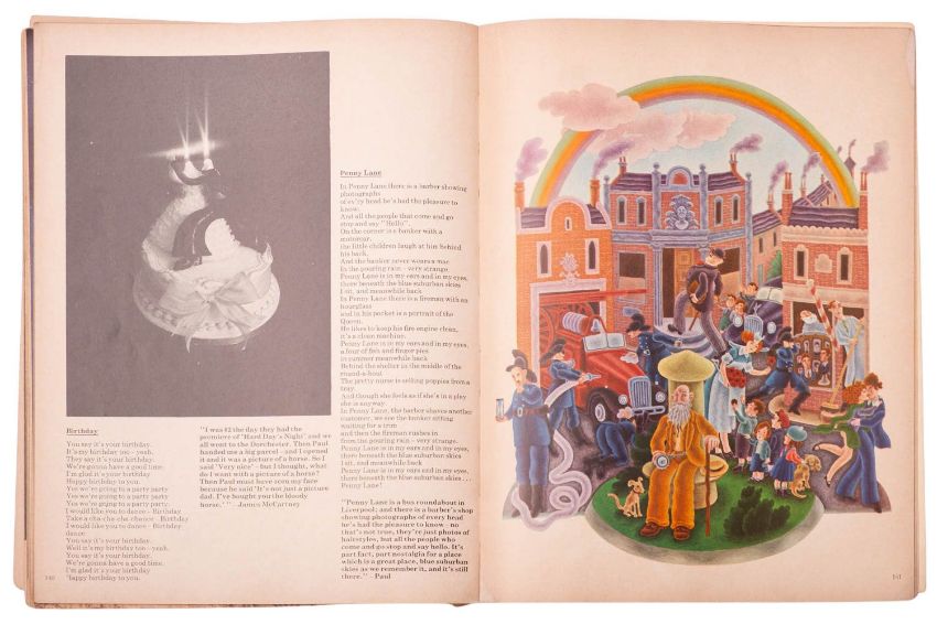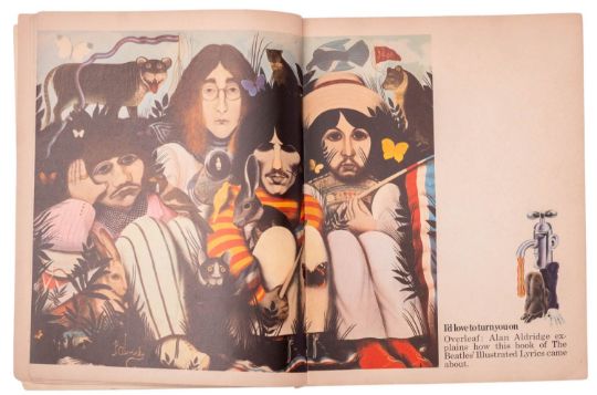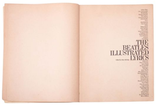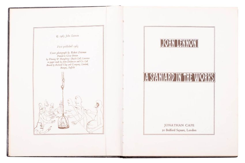 LENNON, John. A Spaniard in the Works, 1st edition, London: 1965, num. illustrations, orig. pictorial boards, 12mo; ALDRIDGE, Alan (ed.). The Beatles Illustrated Lyrics, 2nd impression, London: Macdonald Unit 75, 1970, browning and some staining, ffep detached, orig. pictorial covers scuffed/spoiled, 4to. (2)