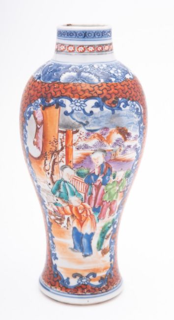 A Chinese Export famille rose baluster vase, late Qianlong decorated in the Mandarin pattern, 20cm [crack to rim].