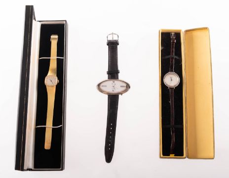 A group of three dress watches, including a vintage Bovenit mechanical wind wristwatch, marked 835 to backplate, on a think brown crocodile style strap, marked Kroko; a vintage ZentRa mechanical wind wristwatch, marked ZentRa, 170 611 19 to backplate; and Time Age quartz wristwatch on black strap, (3).